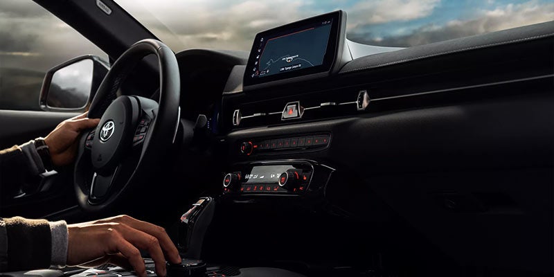 GR Supra’s interior is the ideal blend of form, function and beauty. Designed with the driver in mind, this cockpit features a number of inspired touches to help you get the most out of every drive. Deeply bolstered sport seats match up with console-mounted side knee padding to ensure you’re comfortably in place, no matter the tightness of the turn.