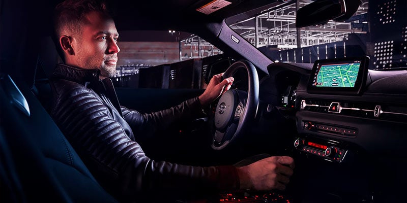 Whether you’re headed to the racetrack or office, GR Supra’s available integrated navigation will help you get there quickly. Just punch in your destination and get turn-by-turn directions on the available 8.8-in. high-resolution touchscreen, in the digital gauge cluster, on the available color Head-Up Display (HUD)—or in all three locations at once.
