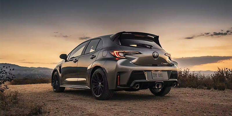 Even at a standstill, GR Corolla looks like it’s ready for action. Flared front and rear fenders show off its wider stance for better grip of the road, while sporty black accents combine form and function. Its available red-painted calipers and GR badging hint that it’s more than just good looks.