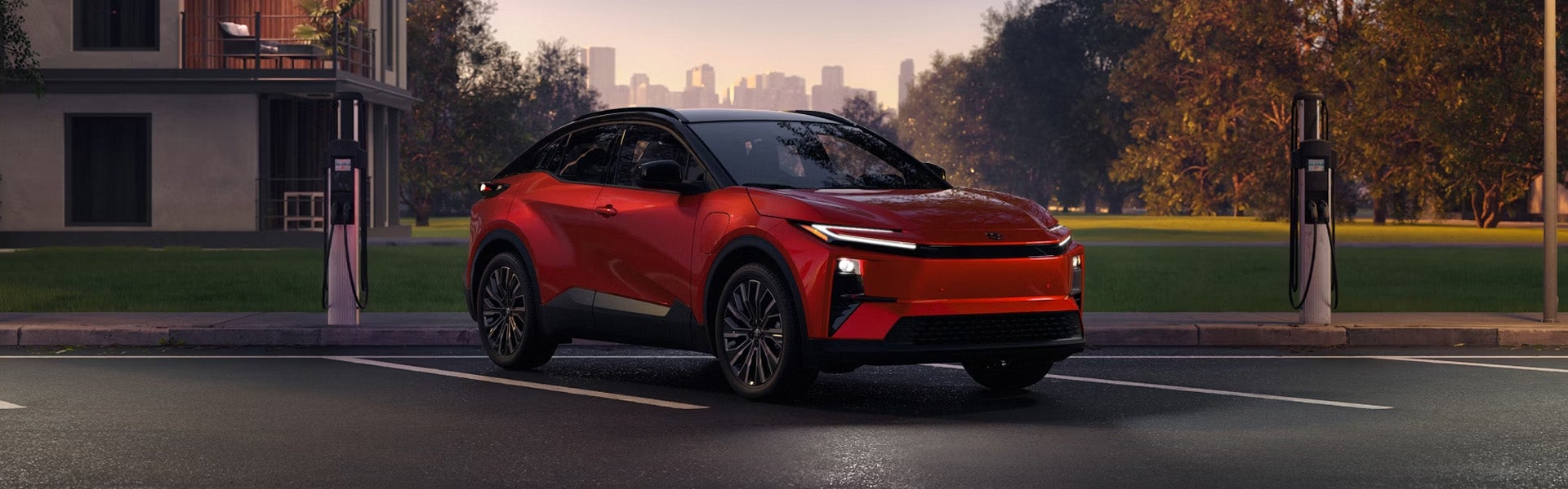* EPA-estimated 287-mile total driving range rating for 2026 C-HR SE and 273-mile total driving range rating for 2026 C-HR XSE, for when vehicle is fully charged and operated under ideal driving conditions. Use for comparison purposes only. Actual range may decrease significantly depending on speed, outside temperature, accessory use, how/where you drive, charging habits, and other factors. Battery capacity also decreases with time and use, which will reduce range. See www.fueleconomy.gov.